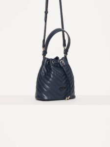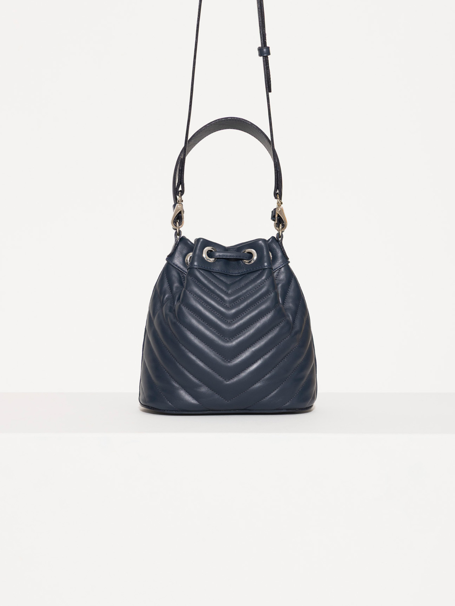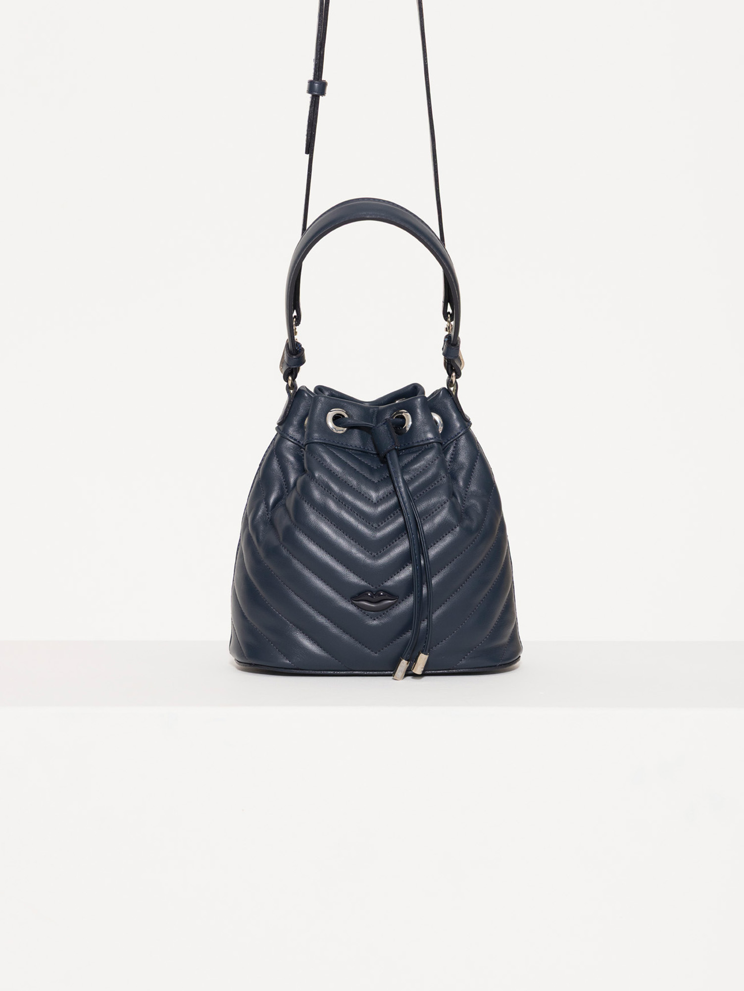 Bucket Lipstick confeccionada en cuero vacuno con detalle matelaseado. Trae correa de mano y correa regulable para mayor versatilidad. En el frente se destaca el aplique lipstick acompañado de herrajes metálicos personalizados. En el interior lleva tarjetero, lo que lo convierte en un accesorio funcional y elegante.