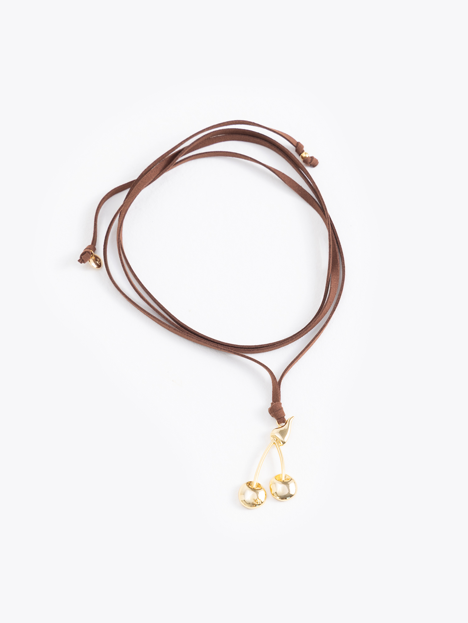 Choker Cherry Fire confeccionado en cordón de descarne regulable, con charm metálico Cherry Fire como detalle central. Permite ajustar el largo según el estilo que se quiera lograr.