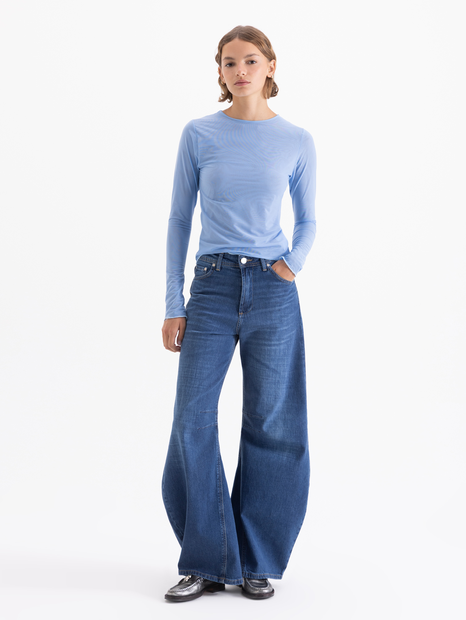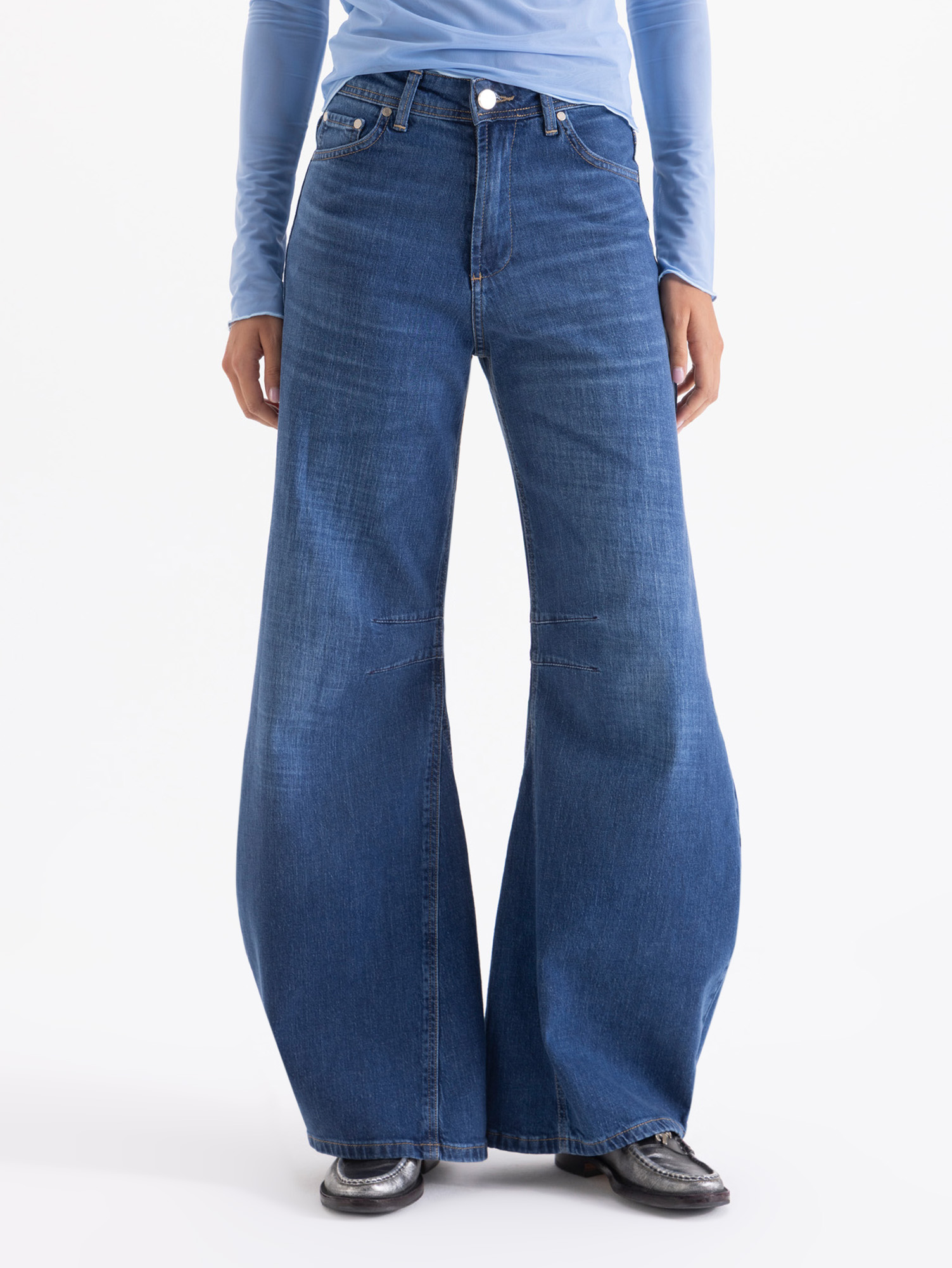 Jeans Lou ¡Nuevo fit! Jeans wide leg con diseño especial en la pierna generado por pinzas y recortes, que aportan forma y movimiento. De tiro medio, pensado para usarse relajado, aunque también se adapta a un calce más alto según el estilo que se busque. Confeccionado en denim liviano y cómodo, ideal para el día a día con un toque moderno.