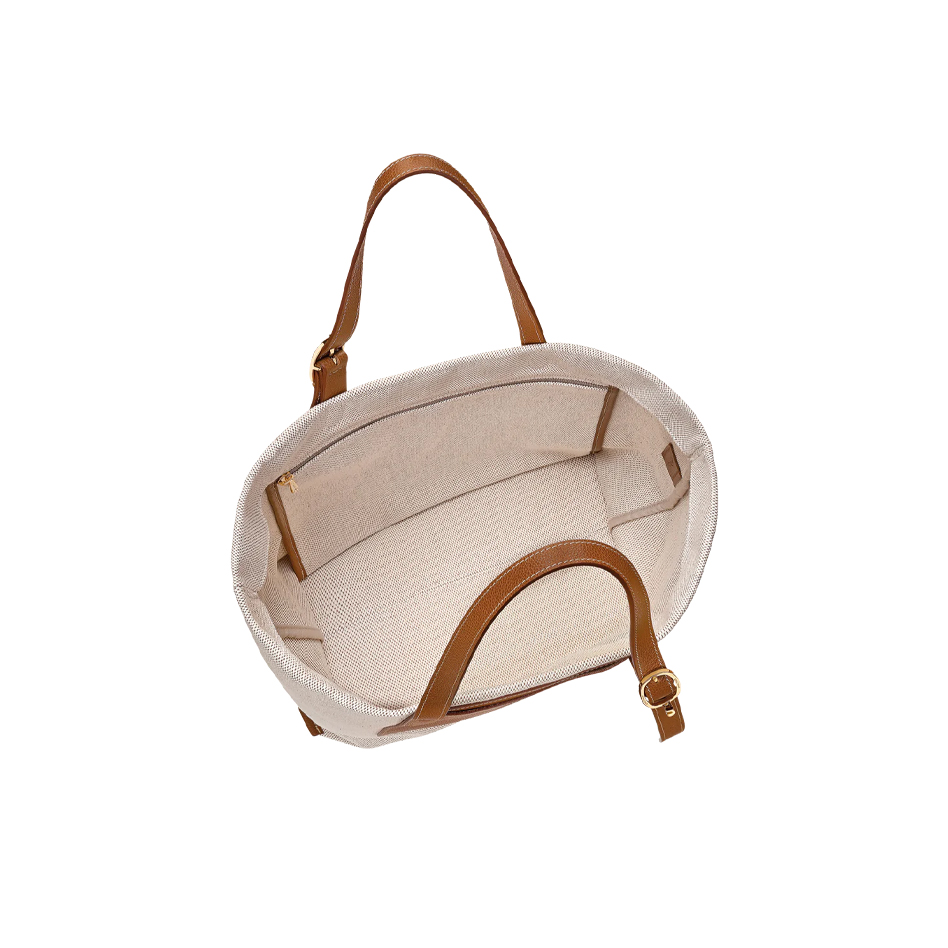Este bolso tote grande de la línea Complice es un accesorio atemporal, sencillo y chic que destaca la artesanía distintiva de Longchamp a través de una elegante combinación de texturas. Confeccionado en lona de algodón jaspeada y con detalles en cuero de vaqueta granulada, ofrece un cálido look bicolor con una textura refinada. El diseño cuenta con asas ajustables, un bolsillo grande y curvo de cuero en la parte delantera y un interior amplio con un bolsillo con cremallera, ideal para llevar documentos A4 o un portátil. Reforzado con una base de cuero para mayor durabilidad y acabado con herrajes dorado pálido, este tote es un imprescindible moderno y dinámico.