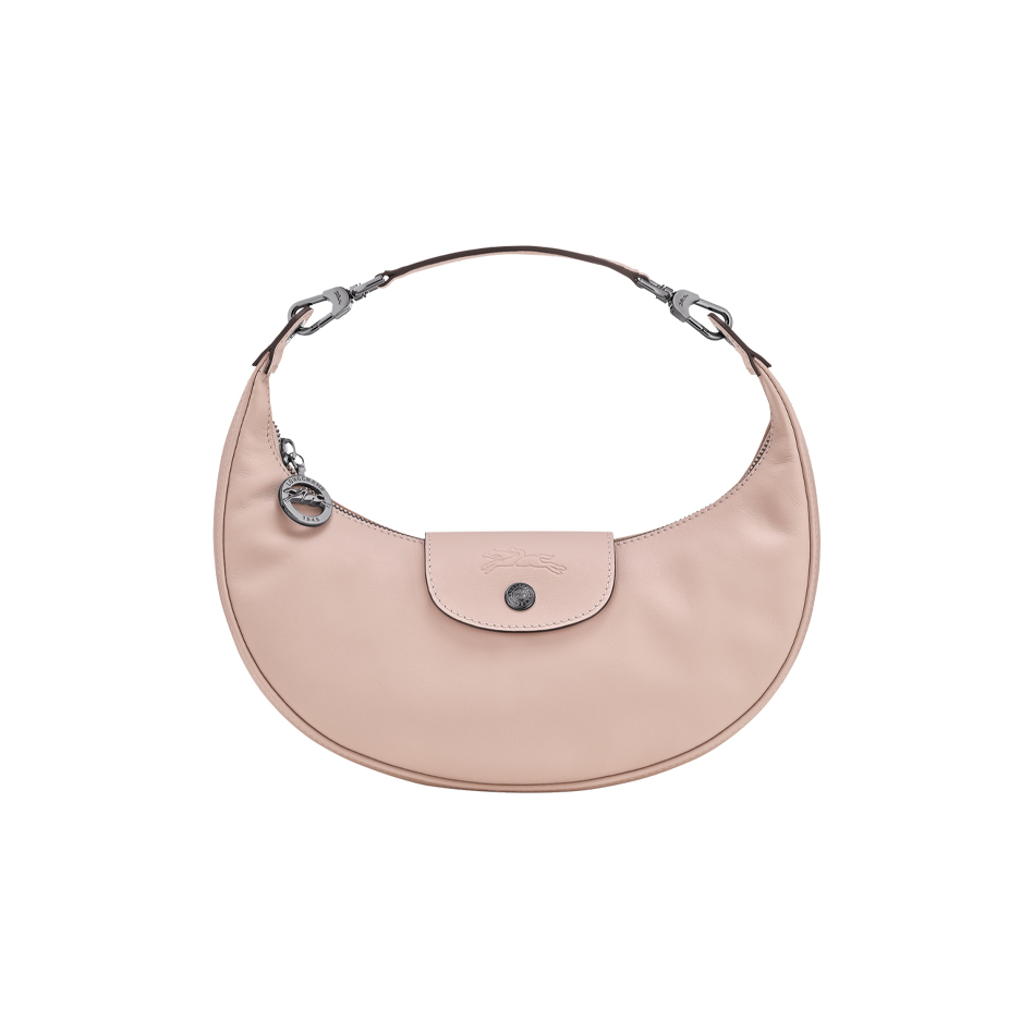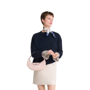 Este bolso de media luna se adapta a tus necesidades gracias a su asa extraíble, que te permite añadir una correa larga para llevarlo cruzado o al hombro. Su forma redondeada le da un aspecto suave pero dinámico, mientras que el interior alberga cómodamente todos tus imprescindibles diarios.