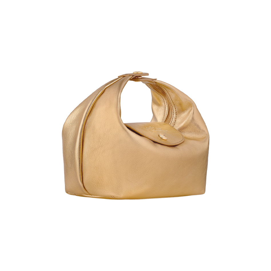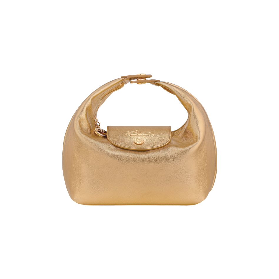 Le Pliage Xtra se reinventa esta temporada con una elegante versión de noche en cuero de becerro metalizado dorado. Este modelo compacto y llamativo cuenta con cierres de cremallera y de botón a presión, herrajes dorados y una ranura interior para las tarjetas, ideal para llevar solo lo esencial. Con su acabado brillante y su audaz aire festivo, es el bolso perfecto para salir por la noche.