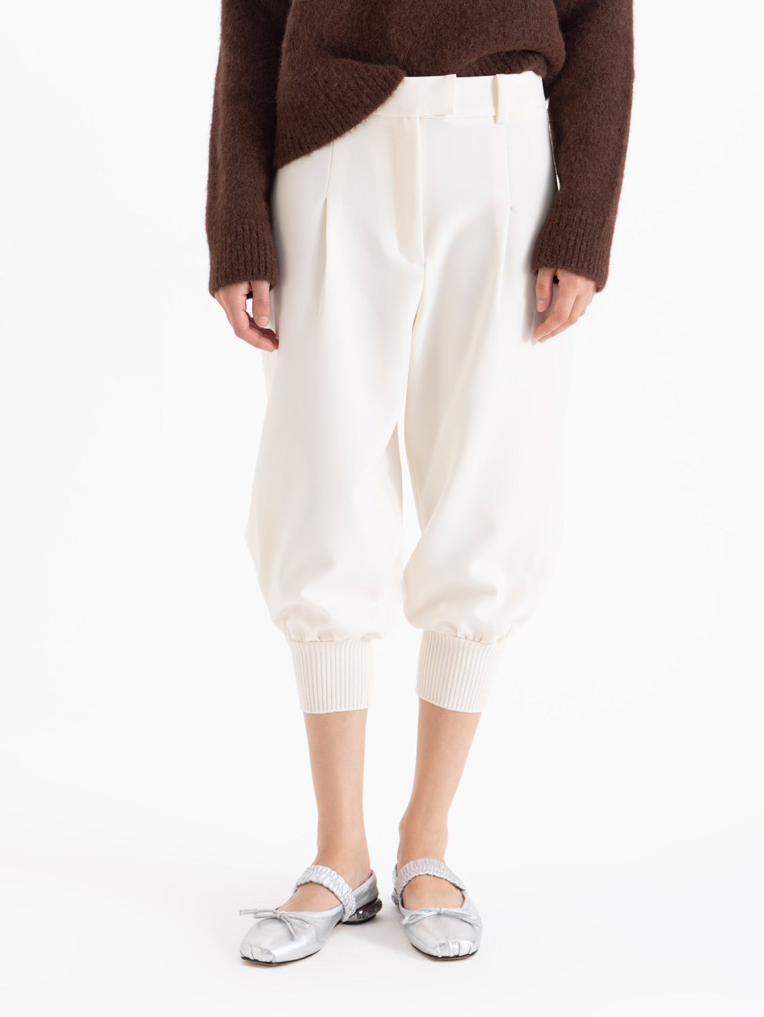 Pantalón Italia de silueta moderna y estructurada, largo por debajo de las rodillas. Presenta presillas en cintura y bolsillos en la parte trasera. Incluye cierre y gancho pantalonero. El ruedo se ajusta con puño tejido, aportando un detalle distintivo y un calce más definido.