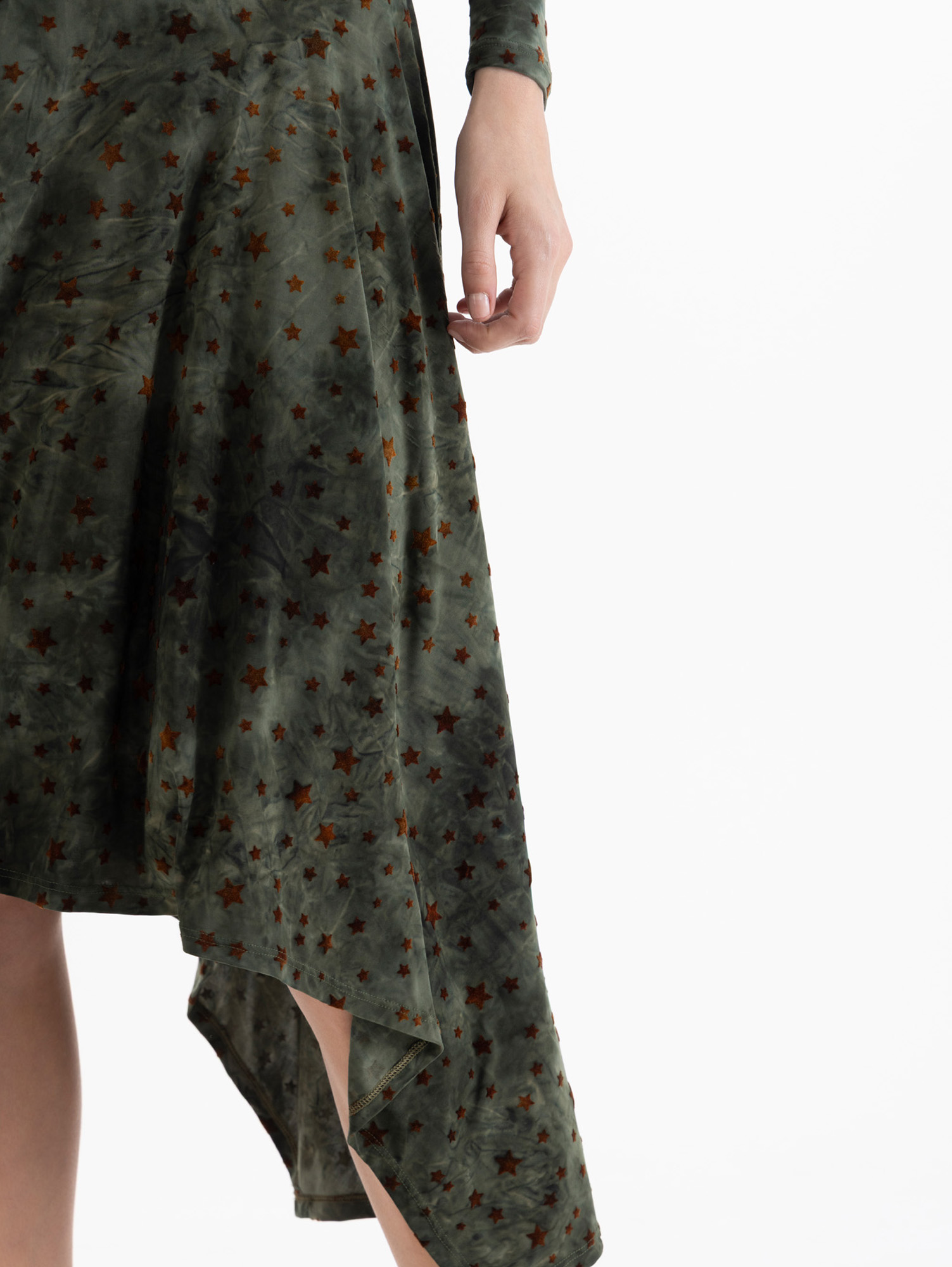 Pollera Star esta confeccionado en tela de Lycra Estampada coon estrellas. Tiene vuelo irregular y canesú en cadera.