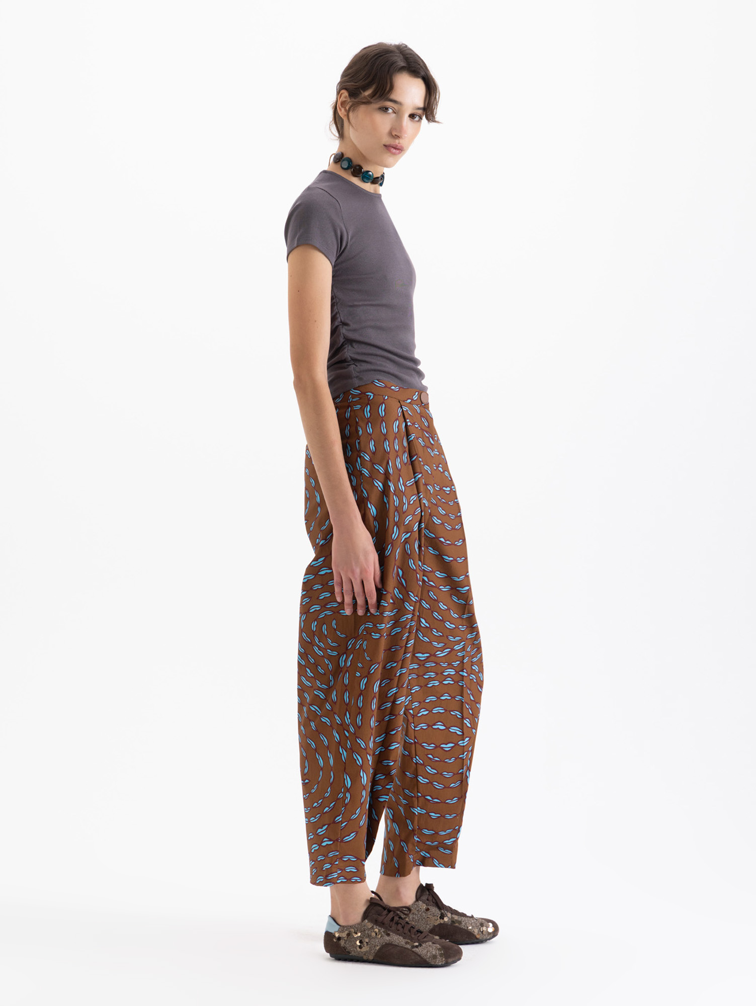 Remera Delfina confeccionada en morley de punto y mangas cortas, es de escote redondo y lleva frunce en laterales.