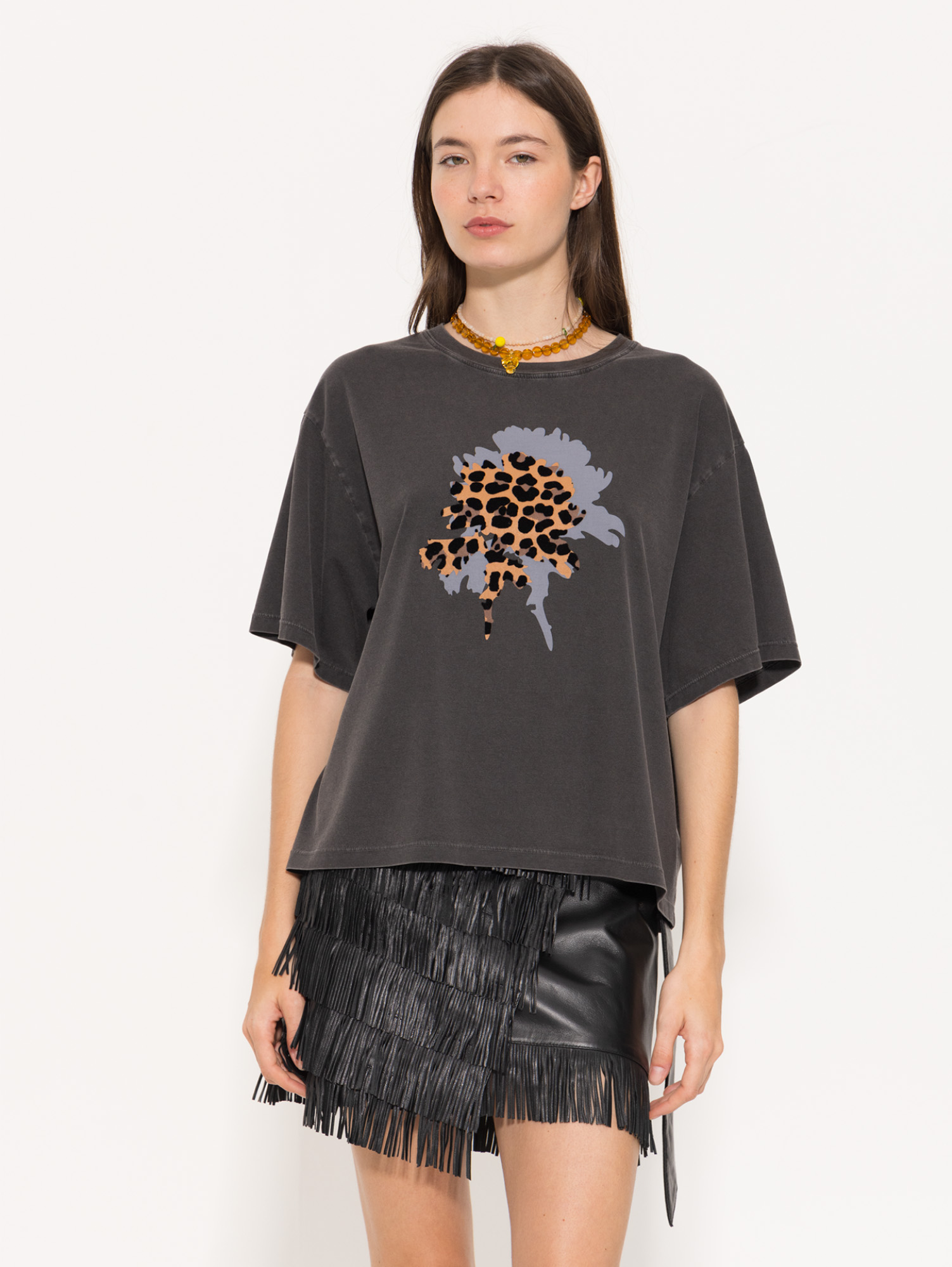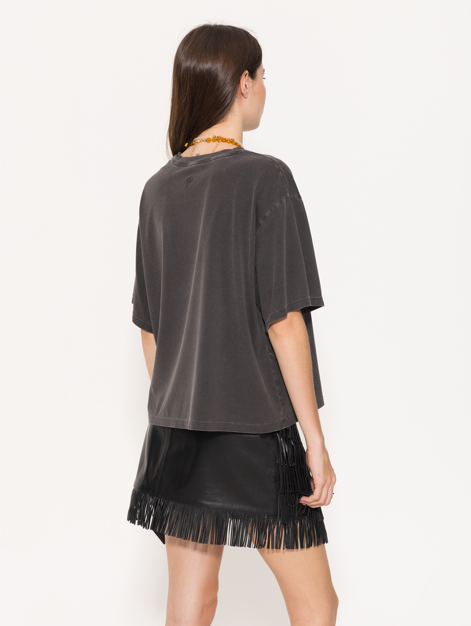 Remera Paradise de fit amplio confeccionada en jersey de algodón pima. Es de mangas cortas, escote redondo a la base y larga por arriba de la cadera. Lleva estampa en el delantero y detalle de logo bordado en la espalda.