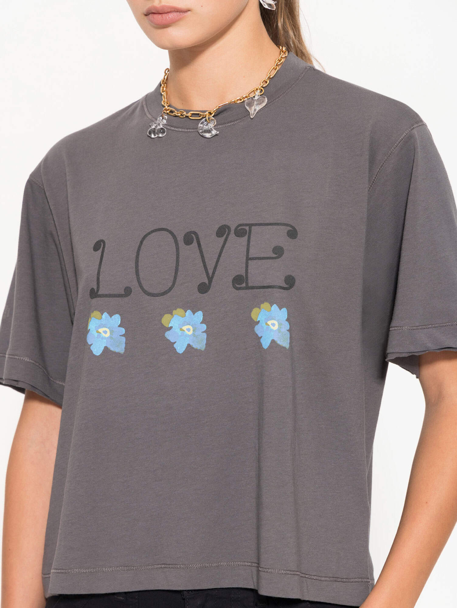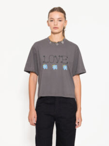 Remera Star confeccionada en jersey pima 100% algodón, es escote redondo, mangas cortas y largo a la primera cadera. Está estampada en la parte delantera y lleva un detalle bordado en la manga.