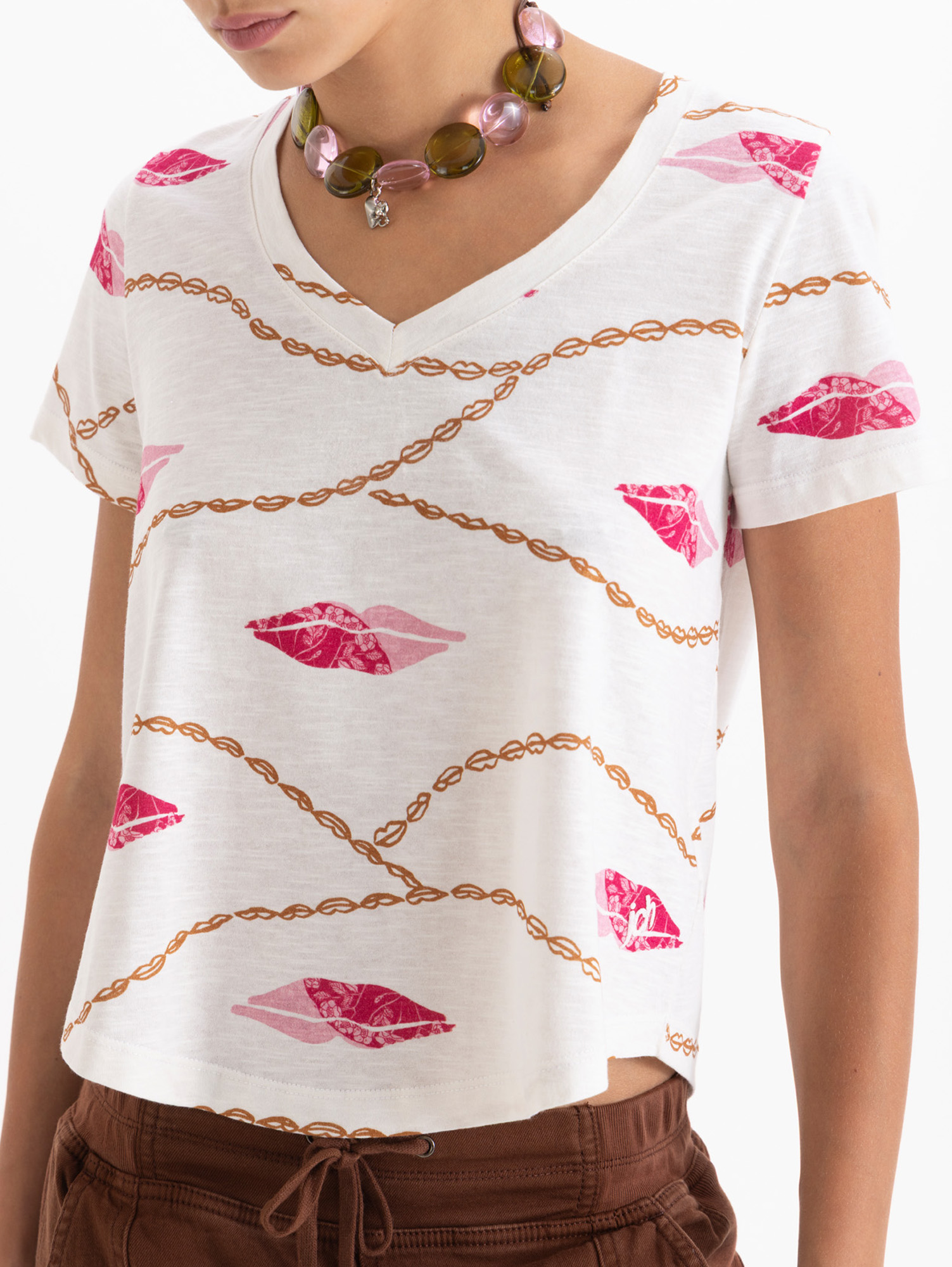 Remera Waves confeccionada en flame estampado, lleva logo JCH. Es de cuello en V, recorte en centro espalda y ruedo curvo. Su calce es regular.