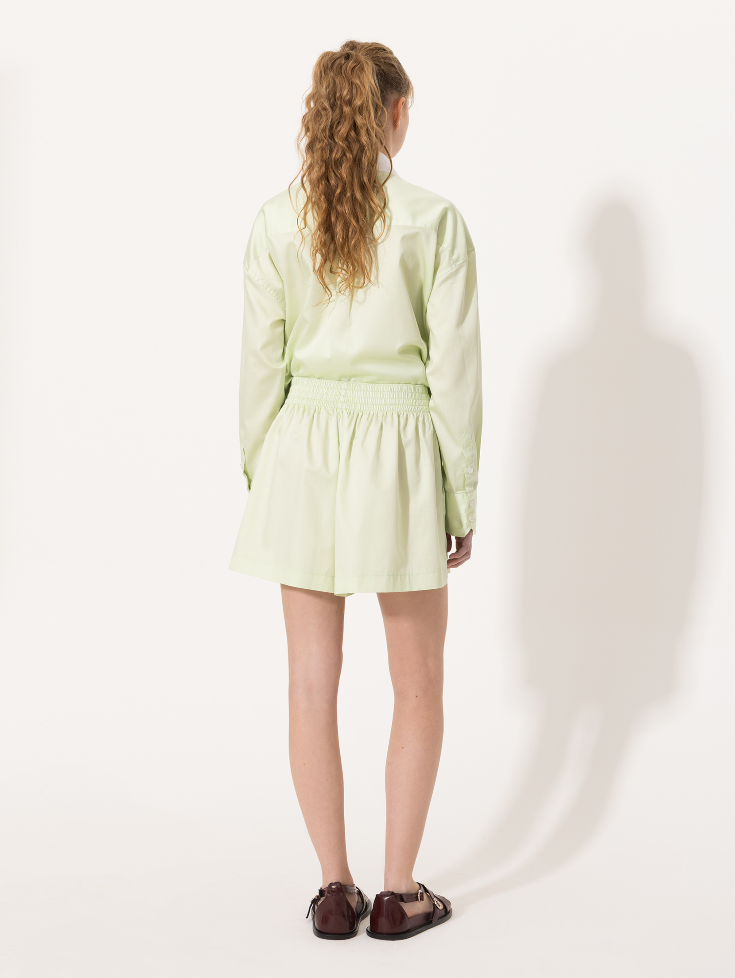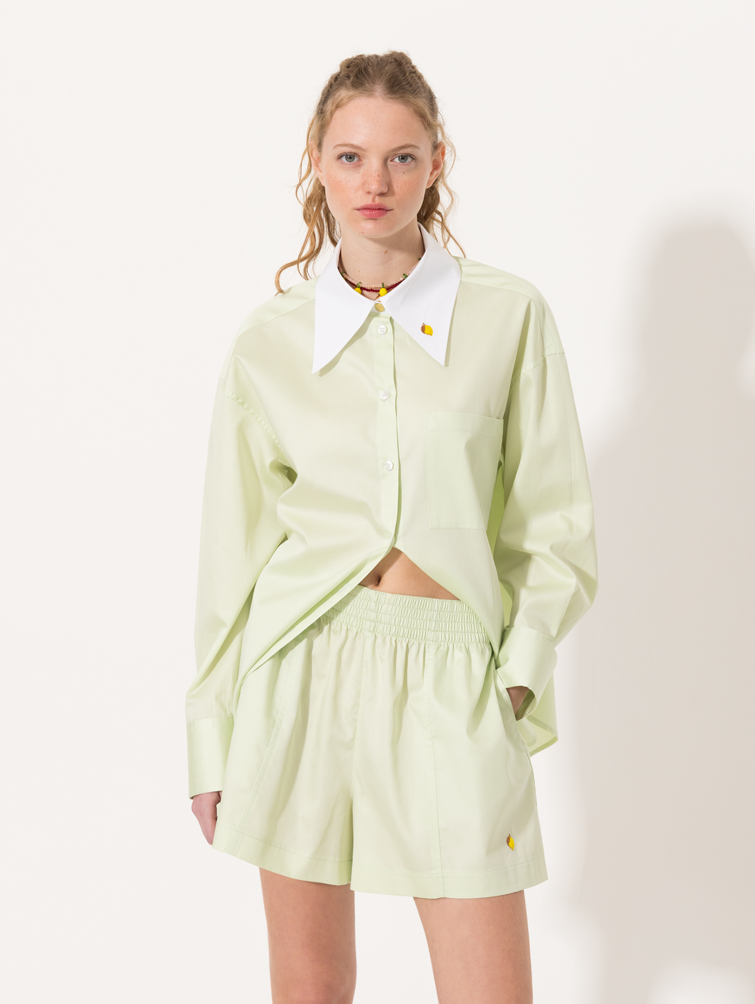 Short Sam confeccionado en poplín de algodón, de calce relajado y largo a medio muslo. Incluye cintura elastizada con frunces que aseguran comodidad y mejor ajuste. Lleva bolsillos laterales y un delicado bordado en ruedo como detalle distintivo. Diseño fresco y moderno.